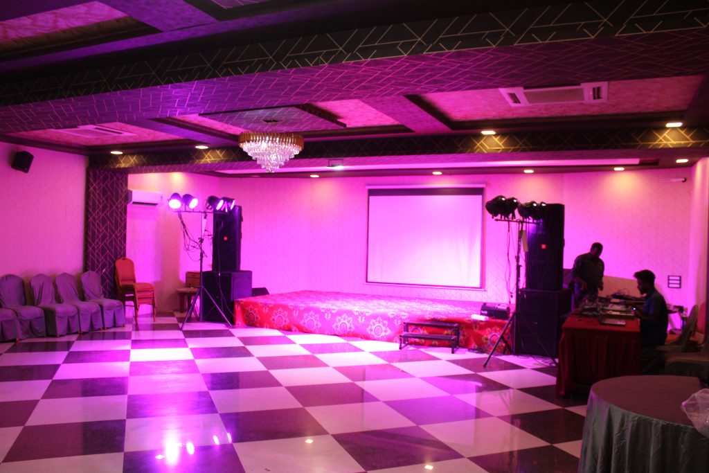 A fully air-conditioned conference hall equipped with modern AV facilities, ideal for seminars, workshops, and corporate gatherings.